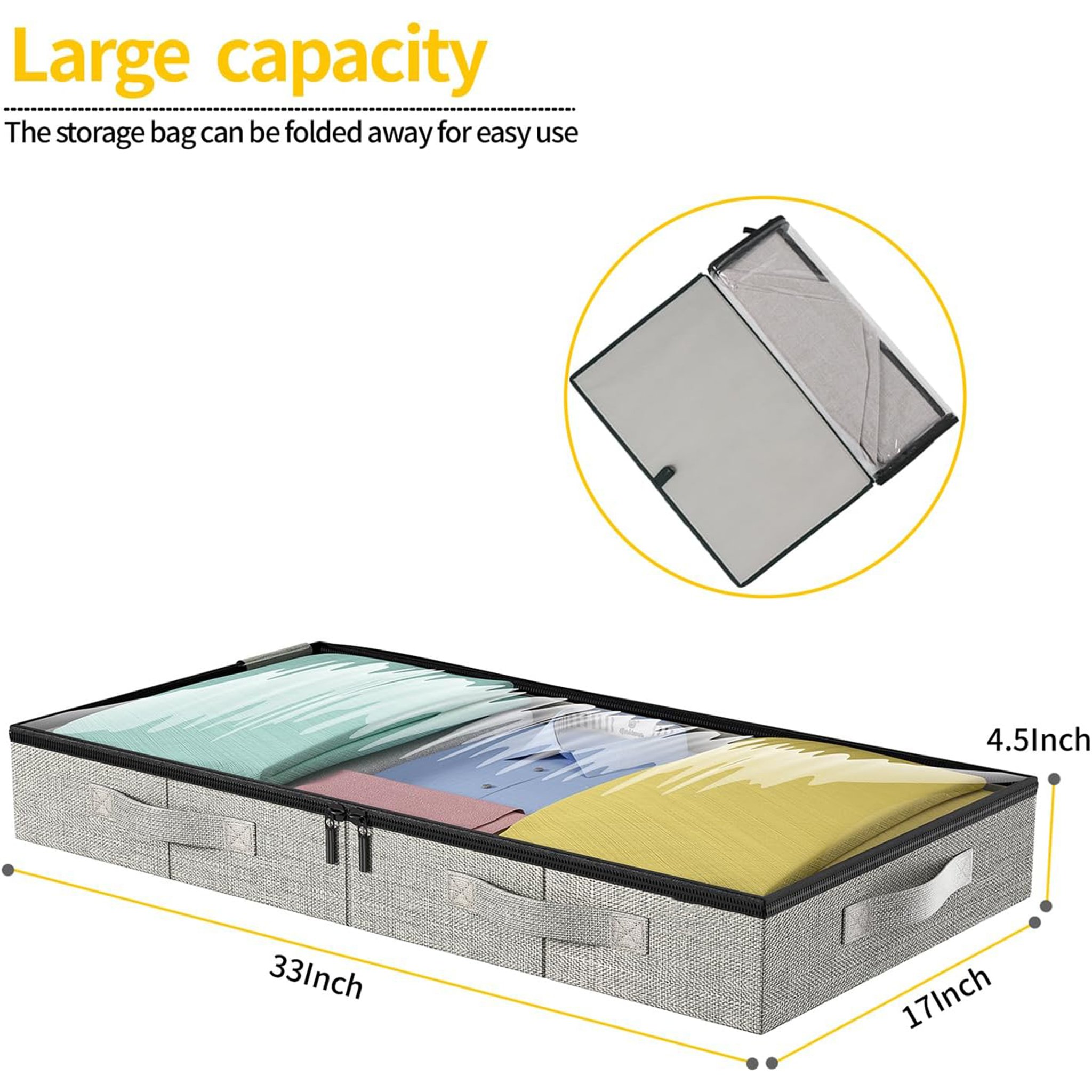 ✔ Stores clothes, bedding, blankets, comforters